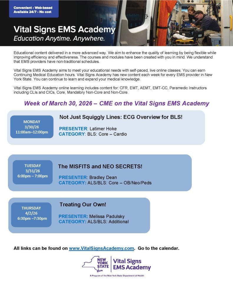Vital Signs EMS Academy Training Week of 3/30